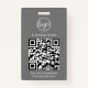 Custom ID name badge in a vertical layout with your logo and QR code. Use the template to add each employee name and title. The backside has your contact information and instructions for returning if found. This simple yet professional design features all text in white over a medium grey background and may be changed to any colour you wish by clicking the "customise" button. This corporate style ID badge may be personalised for any type of business big or small.