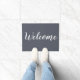 A simple grey front door mat with welcome message. The welcome doormat colour is customisable. Change to your favourite colour to match your home decor.