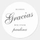 Simple Grey White Quinceañera Gracias Script Name Classic Round Sticker