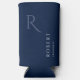 Simple Groomsman Monogram Blue Wedding Seltzer Can Cooler