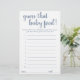 Simple "Guess that baby food" baby shower or gender reveal party guessing game card featuring a fun, casual hand-lettered script. The classic design includes a modern handlettered quote typography overlay. For other colours or matching products, please visit the JustFharryn Zazzle store, or contact the designer, c/o Fharryn@yahoo.com All rights reserved. #bohochic #zazzlemade