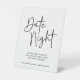 This sign invites guests to share date night inspiration for the happy couple with a black calligraphy script and two lines of custom text.