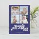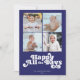 These 5" x 7" flat Hanukkah greeting cards feature a minimalist design with the greeting, "Happy All the Days," in white letters on a royal blue background with placeholders for four (4) of your favourite photos, family name(s) and year.