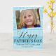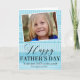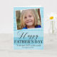 A simple typography "Father's Day" greeting card, features your custom photo over a soft blue geometric pattern collage background, personalised with your own text.