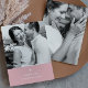Simple and chic blush pink minimalist Valentine greeting card features a sweet white heart with your personalised name and two custom photos.