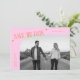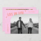 Modern and stylish save the date card featuring a modern typography text that says "save the date." One photo in the font and one on the back. The background is orange pink.
