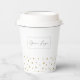 This paper cup features a simple logo and text template with a cute gold heart pattern. Add your logo and customise the text with your information. You can use this personalised cup at your business place, shops, company event or, etc.
