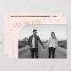 Modern and stylish save the date card featuring a modern typography text that says "save the date." One photo in the font and one on the back. The background is peach.