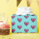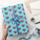 Wrapping paper featuring a simple classic red heart in a block pixel art style, arranged in a half drop repeat pattern on a greenish blue or turquoise background. Romantic wrapping for your Valentine's gifts. For fans of old games and retro 8 bit style images; an interesting alternative on a classic symbol of love or romance.