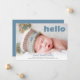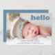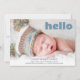 Simple Hello Blue Script Blue Back Baby Boy Photo Announcement