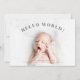 A simple modern birth announcement where a full bleed photo of your little one takes centre stage. The design features a curved header greeting in grey that reads "Hello World!" - this can be amended. The name and birth details of your new addition are at the bottom. The reverse of the card features a preppy grey and white polka dot pattern.