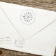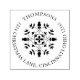 This design features a Christmas holiday return address simple self inking stamp with stylish trendy elegant circle text design and a simple minimalist minimal creative,winter snowflake design elegance font, a Christmas holiday mailing accessories,floral flower leaves leaf design,simplistic elegance classic family name,traditional elegant emblem motif, a Christmas holiday name address custom, a Christmas holiday greeting card stamping