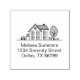 A simple line art of a two-story house with a car parked in the left side and a tree on the right. Customise with your own address.
