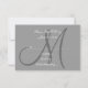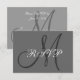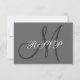 A simple, modern wedding RSVP reply card design with your last name initial in grey and white colours, makes this a versatile plain wedding RSVP because your initial will create your own unique design with your choice of colours for the text and background. Design by Elke Clarke ©2008. Customise with your monogram and wedding colours. Add all your wedding RSVP text on the back of the card using Zazzle's easy to use menu prompts. Comes with blank white envelope. For matching accessories see links below.
