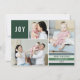 Simple Joy 3 Photo Collage Modern Stripes | Green Holiday Card
