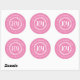 Affordable custom printed round return address stickers personalised with your family name and return address. This rustic modern holiday design features simple JOY lettering and branches on a pink background. Use the design tools to change the background colour and fonts to further customise your own unique Christmas return address labels.