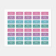 These super simple, modern clothing labels are both waterproof and washing machine safe. They make labelling and keeping your personal items safe from getting lost. Designed by Stacey Meacham featuring an array pink, purple and teal blue colours.