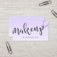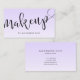Elegant minimalist makeup business card design which features your name and makeup text in a modern handwritten script lettering, gradient lavender colour background and a contact information on the reverse side.
