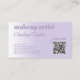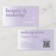 Beautiful elegant minimalist style artistic makeup artist business card. Contemporary light lavender violet coloured business card with a modern retro and minimalist lilac purple and sophisticated classy white font.. Click on 'Personalise' to find the template ready to be customised with your unique business name, profession and contact information, text and QR code of your choice. This particular pretty and unique design was made for those who like sophisticated classic strong designs.