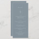 Elegant simple minimal leaf dusty blue 4x9" Wedding Table Menu Cards Flat Dinner Menu in modern script calligraphy. You can find a collection of matching items and size 5x7 on our store VelvetPaperCo.