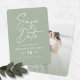 Simple Leaf Green with Script and Photo Wedding Save The Date