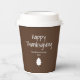 Modern Family brown Thanksgiving paper cup, with a simple leaf and customisable typography design. A great addition to your holiday table this autumn season.