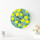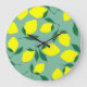 Simple Lemon, Green Background Print. Large Clock