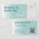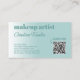Beautiful elegant minimalist style artistic makeup artist business card. Contemporary light ocean seafoam blue coloured business card with a modern retro and minimalist teal green and sophisticated classy white font. Click on 'Personalise' to find the template ready to be customised with your unique business name, profession and contact information, text and QR code of your choice. This particular pretty and unique design was made for those who like sophisticated classic strong designs.