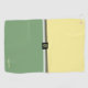 Stylish and elegant two tone light yellow and asparagus green colour design with semi-transparent black and white belt and a monogram.