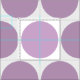 A pattern of lilac circles is on white fabric.