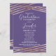 Modern, simple, and elegant lined stripes in faux printed rose gold on violet purple, Graduation Ceremony invitations. This classic and sophisticated design is perfect for the classy, stylish, and trendy graduate. Personalise with your own message on the front and a customised monogram initial on the back. All photo print design.