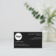 Simple logo and custom text for your business with white details on a black background. Replace the logo and text with your own to customise.