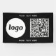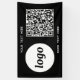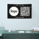 Simple logo with text and QR code to promote your business. Replace the logo and QR code with your own, and change or remove the text to customise. Minimalist and professional to reflect your brand. White on a black background.