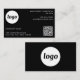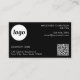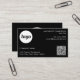 Simple minimalist logo and custom text with QR code on a black background for your business. Replace the logo, QR code and text with your own to customize, and change the background color to match your own branding.