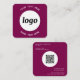 Simple Logo and Text QR Code Dark Cherry Pink Square Business Card
