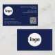 Simple minimalist logo and custom text with QR code on a navy blue background for your business. Replace the logo, QR code and text with your own to customise, and change the background colour to match your own branding.