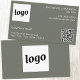 Simple minimalist logo and custom text with QR code on a sage green background for your business. Replace the logo, QR code and text with your own to customise, and change the background colour to match your own branding.