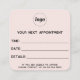 Simple minimalist logo and custom text appointment card for your business clients and customers. Replace the logo and choice of text with your own to customize, and change the background and text color to match your own branding. Clean and minimalist for a professional look. Ideal for a beauty or hair salon, doctor, optician or dentist office, veterinary practice and any customer facing appointment based business.
