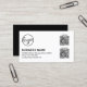 Modern business card featuring a simple and minimal design with your logo along with your business name and contact details in black and white. To the right are two QR codes (if you prefer, you may remove one or both QR codes in the design editing tool). A basic and plain design that still comes across as professional.