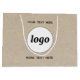 Add your own logo branding and choice of text to this design. Remove the top or lower text if you prefer. Minimalist and professional to promote brand loyalty. Great as a gift bag, product packaging, trade show giveaways, or for your store front customer product purchases. Please note that the brown paper is a photographic effect.