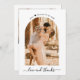 Elegant Minimalist Modern Love and Thanks Script Arch 2 Photo Wedding Thank You Card. Simple Stylish wedding thank you card template featuring one (arch shape) photo on the front and one photo on the back. With the text "Love and thanks" in a cursive hand lettered swash tail font calligraphy or typography script font in black and white. Easy to personalise with name and thank you message. If You need help or matching item, please contact to creator!