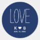 Simple LOVE Navy Blue Wedding Initials Monogram Classic Round Sticker