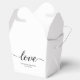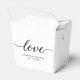 The design features an elegant and modern script font that beautifully showcases the word "Love." The black and white colour scheme adds a touch of sophistication and class to these favour boxes, ensuring they complement any wedding theme.