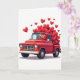 This greeting card shows a classic ruby-red pickup truck angled slightly to the side, with a shiny chrome grille, rounded headlights, and curved fenders. The truck bed is packed with glossy red hearts that spill upward and outward, as if they’re floating into the air. Behind the wheel sits a heart-shaped character with bright blue eyes and a big smile, holding the steering wheel with tiny hands. The background is plain white, which makes the reds stand out and keeps your focus on the truck and the hearts. Each heart has soft shading and a little shine, so the pile looks full and real, like love you can almost touch. There isn’t any printed message on the front, so your words inside get to be the main focus ❤️. It feels meaningful to give because it looks like someone is showing up with care, bringing affection straight to the person they love 🥰.