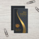 Design features an elegant simple faux gold wave that runs vertically across the face of the card dividing its space between the black and grey waves. In the grey portion lies your elegant name and job title at the top. In the neighbouring black wave, you have the faux gold profit graph which you can use and the contact details.