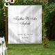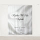 Redefine your wedding ambiance with this sophisticated White Silk Texture Wedding Photo Backdrop, meticulously crafted for modern couples who value elegant simplicity. Featuring an immaculate white silk background complemented by sleek black accents, the design achieves minimalist refinement while harmoniously fitting a variety of wedding themes. A distinct feature of this piece is its customizability—it allows you to personalise the quote, incorporating the couple's unique wedding mantra or cherished phrase, making it truly one-of-a-kind. Script fonts in a polished black tone enhance its graceful aesthetic, creating a perfect balance of sophistication and simplicity.