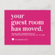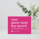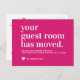 Your Guest Room Has Moved Moving Announcement featuring a modern script and font typography and a heart.