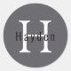 Simple Masculine Grey Monogram Name + Initial Classic Round Sticker