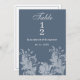 A simple elegant mauve blue and white floral lace Wedding Table Numbers invitation. This minimalist pastel colours summer floral wedding invitation is perfect for any classy, sophisticated girl. This design is ideal for a trendy and stylish wedding event. Customise this design with your message and personalised information. All designs are printed.