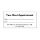 This stamp says "Your Next Appointment" at the top. There are also lines for the date and time of the appointment. There's also display text you can edit to create a custom message if desired. The bottom has display text you can edit for the doctor's name (or practice name) and phone number. All text can be edited or deleted.